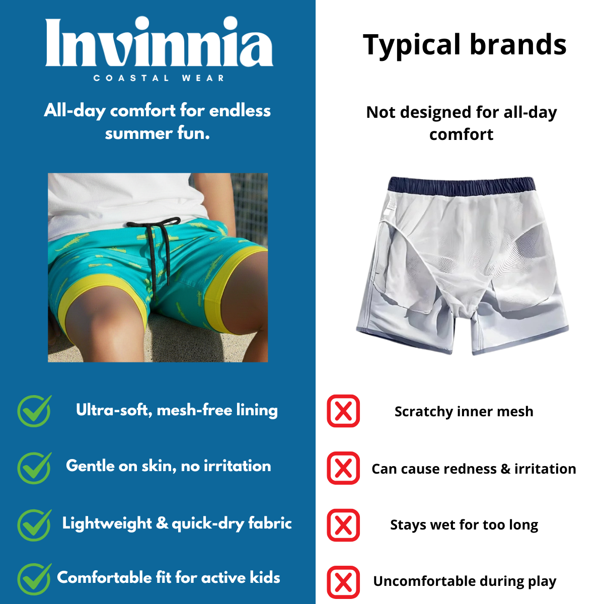 At Invinnia, every kids swim short is crafted with the same care and quality standards as our adult collection.